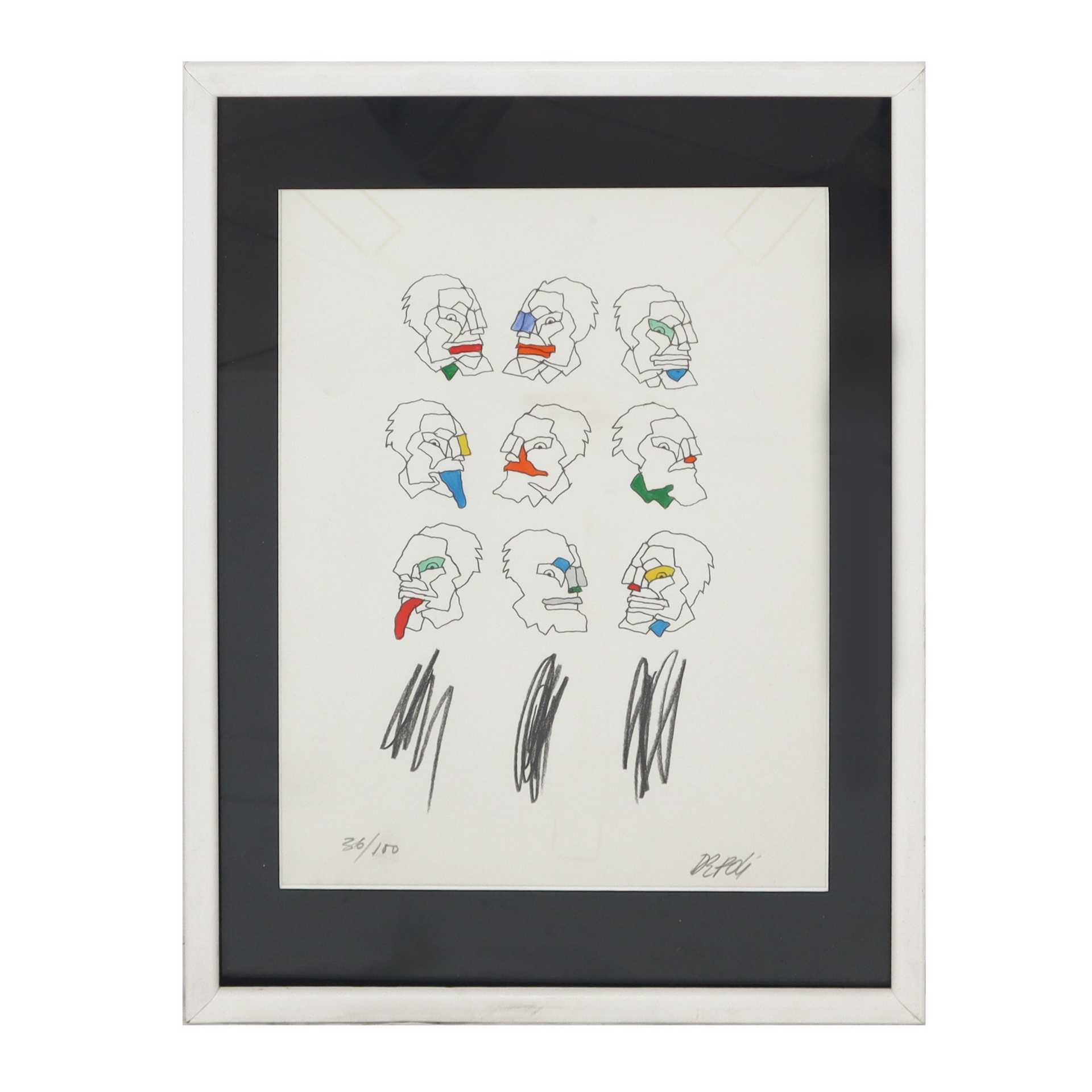 Fabio De Poli (Genova 1947) - Prova d'autore (facce di profilo) 32 x 23 cm Litografia a colori Sinistra: Tiratura 36/150