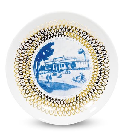 FORNASETTI PIERO Milano 1913 - 1988 Piatto in ceramica realizzato per il 50°...
