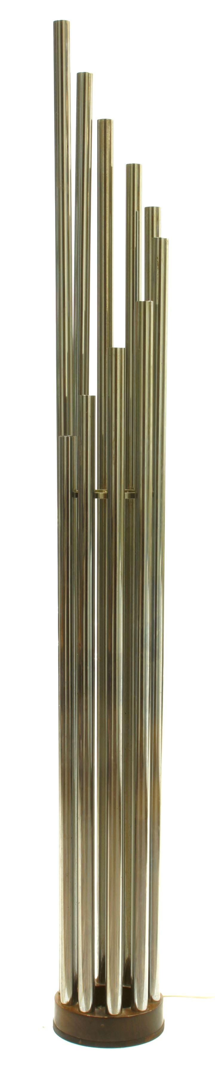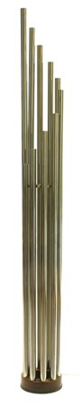 Lampada da terra in acciaio con dieci punti luce disposti su varie altezze.