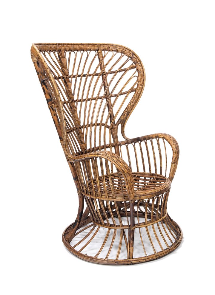 CARMINATI LIO Poltrona con struttura in vimini. Prod. Casa e Giardino, anni...