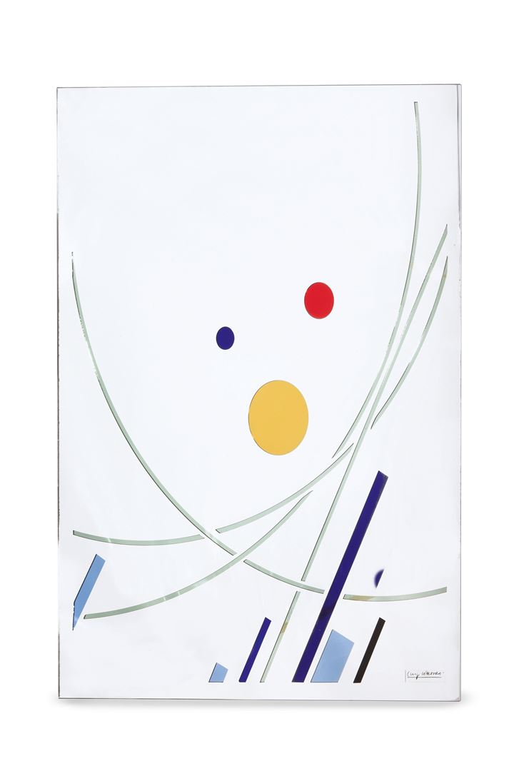 VERONESI LUIGI Milano 1908 - 1998 Specchio con disegni geometrici in vetro di...