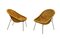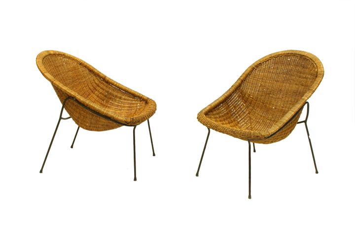 Poltroncine con struttura in metallo laccato, sedute e schienali in midolllino.