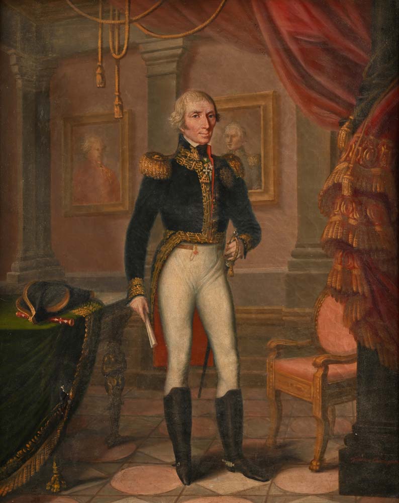 Ritratto di Ignazio Isidoro Thaon di Revel e Saint-André, Conte di Pralungo Firmato in basso a destra 'Fridericey Chiarla pinx.' olio su tela cm 58x47 - in cornice cm 68x56 Famiglia Imperiali, Roma, discendenti di Paolo Camillo Thaon di Revel e di Sant'Andrea, Duca del Mare, Torino