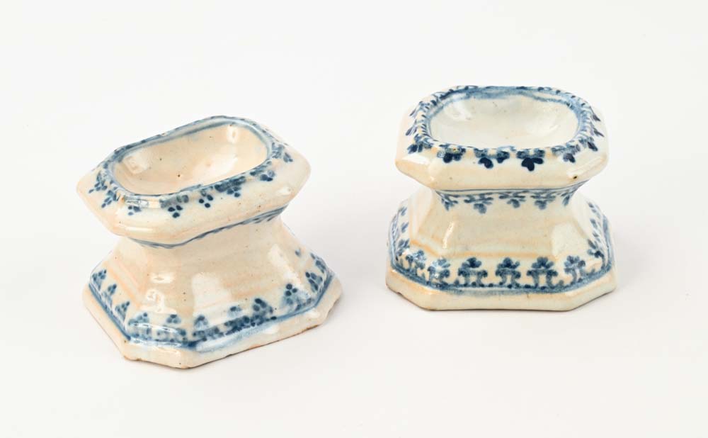 Lot 79 | Coppia di saliere in maiolica bianca e blu, Savona, XVIII secolo a forma di...