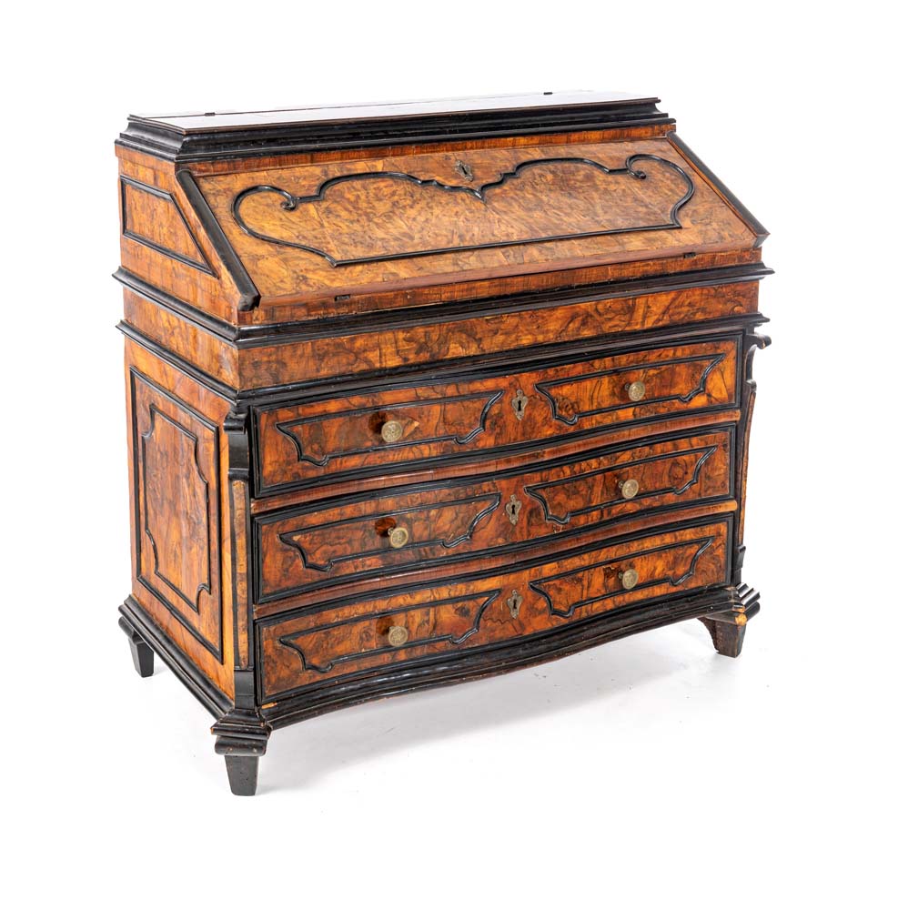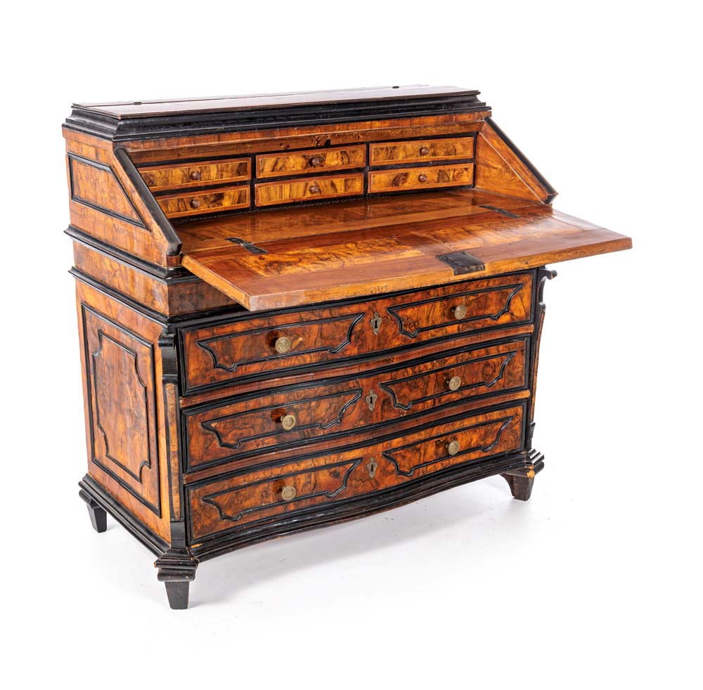 Cassettone a ribalta in radica di noce con cornici ebanizzate, Lombardia,...