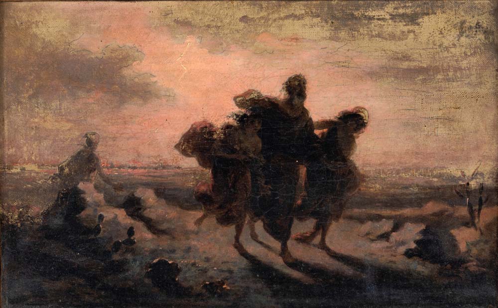 Loth e le figlie in fuga da Sodoma Olio su tela cm 23 x 37,5 - in cornice cm 27,5 x 42