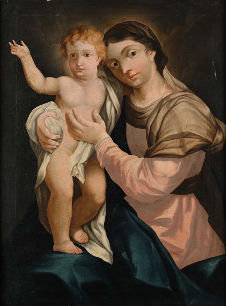 Pittore del XVII secolo - Madonna col Bambino olio su tela cm 90x67 - con cornice 107x84