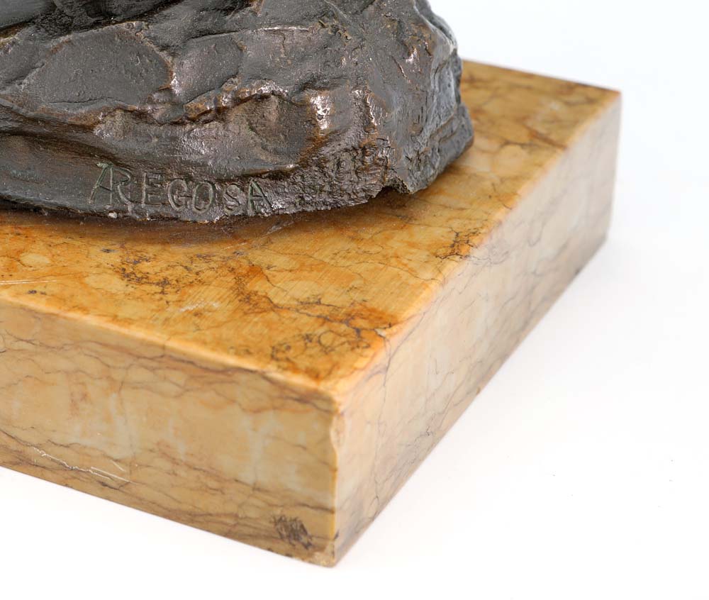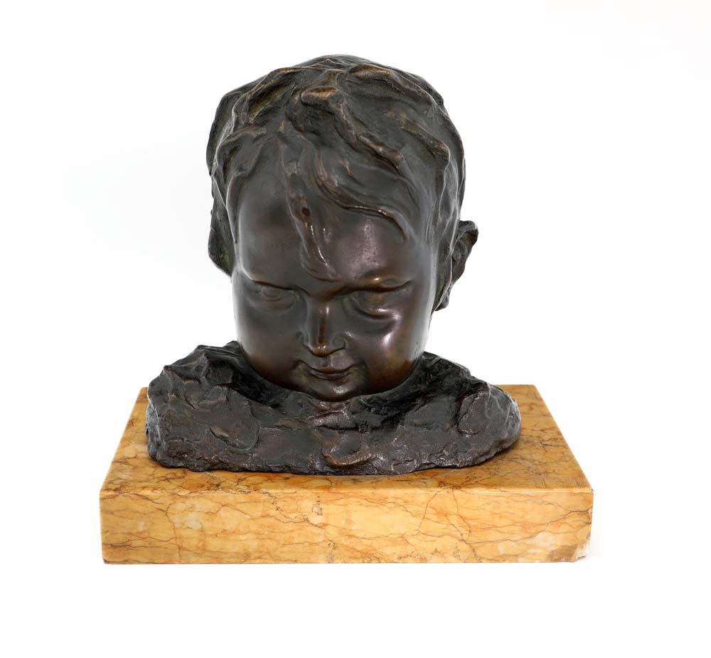 Testa di bambino Firma A. Regosa sul retro bronzo su supporto in marmo giallo altezza cm 21 - l'insieme cm 26x25x16