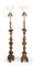 Coppia di torciere in legno intagliato e dorato, Italia meridionale, XVIII secolo fusto a balaustro composito su base trilobata altezza cm 75 comprensiva di base in velluto; complete di paralume cm 157