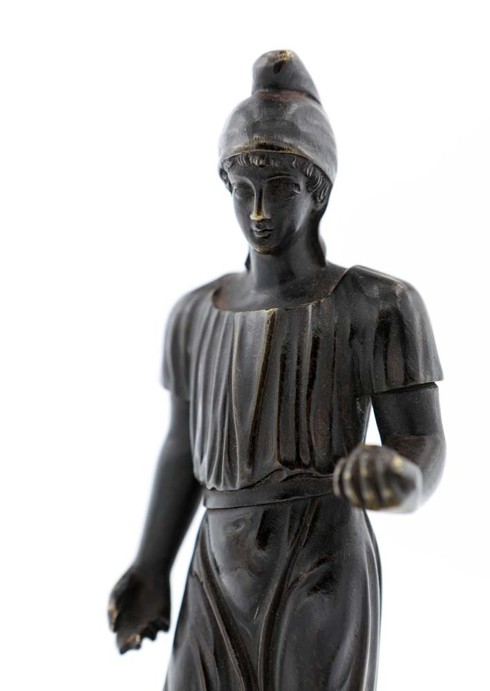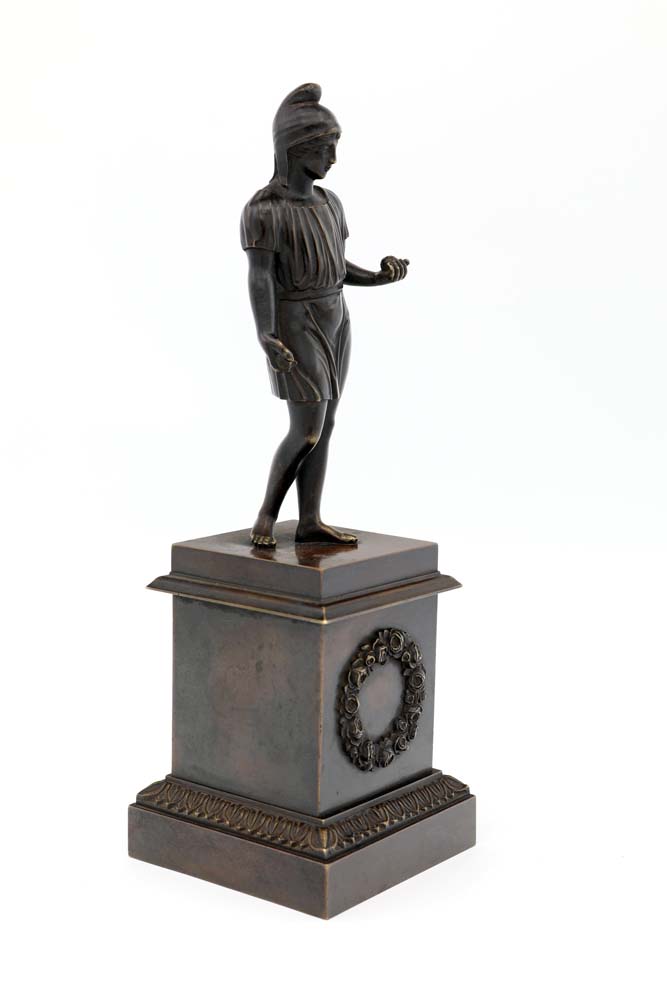 Piccola scultura in bronzo brunito raffigurante un oplita piedistallo...
