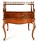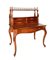 Scrittoio da centro con alzata con filettature ed intarsi, prima metà del XIX secolo piano sagomato rivestito in pelle sormontato da un'alzata con quattro cassetti ed un ripiano racchiuso da ringhierina a balaustrini; fascia di linea sagomata comprendente un cassetto, gambe mosse terminanti a ricciolo, decorate all'attaccatura da grandi corolle intagliate in bassorilievo cm 143x115x75