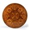 Tavolo tondo in ciliegio d'epoca Carlo X, Italia centrale, 1830 ca. interamente intarsiato in legni di frutto naturali e pirografati; il piano è centrato da un rosone da cui si dipartono quattro volti circondati da sottili racemi intrecciati, racchiusi in un'ampia cornice a volute vegetali variamente ricurve; fascia percorsa da motivi ad onda, sostegno a colonna poliedrica idealmente trattenuta da una cespo ebanizzato intagliato, caratterizzata da intarsi ornamentali alternati a lati concavi; base quadrangolare con profilo sottolineato da nastri accavallati; piedi ferini cm 76x140