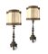 Coppia di torciere rivestite in metallo, XVIII secolo trasformate in lampada; complete di ventola paraluce altezza complessiva cm 98
