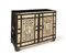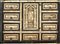 Stipo in legno ebanizzato con placche in osso pirografato, Germania, XVII secolo facciata a due sportelli decorati ognuno da figure allegoriche entro edicola architettonica racchiusa da tessere con personaggi e paesaggi con animali; all'interno un'antina centrale con cinque tiretti interni, circondata da cassettini con profili intagliati a trottola; maniglie laterali in bronzo; piedi a plinto cm 52x68x30