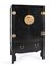 Mobile contenitore in legno ebanizzato, Cina, XX secolo di linea squadrata caratterizzata da serrature e finiture ornamentali in ottone dorato, reca due ante frontali e due cassetti in linea sottostanti; gambe rastremate cm 179x105x60