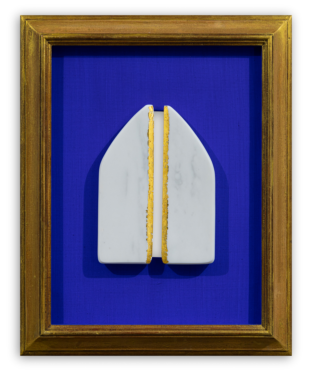 Marmo bianco e foglia oro su tela intavolata
