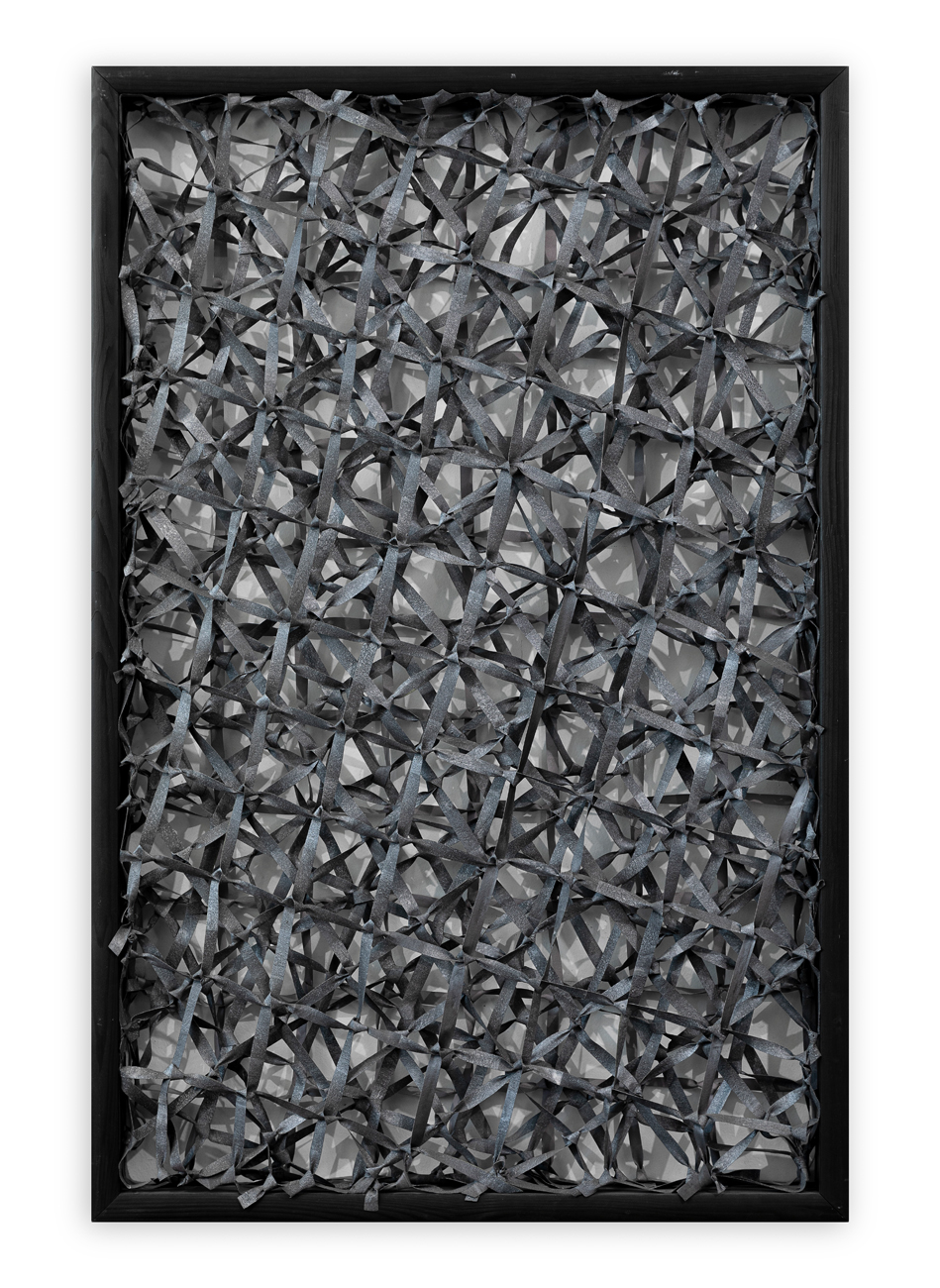 Tela tagliata e annodata montata su telaio