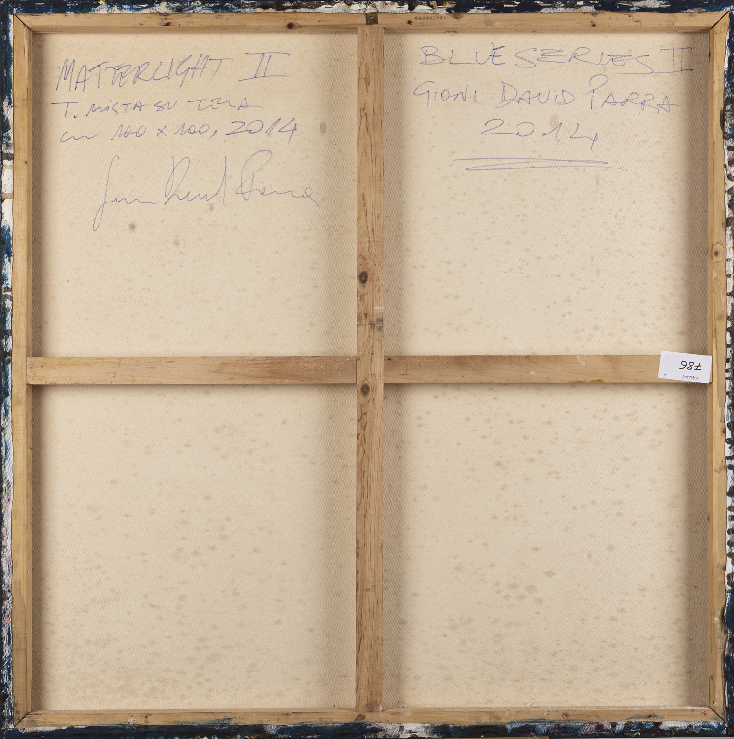 Titled, dated, signed and inscribed on the back: Matterlight II, 2014, Blue Series, Gioni David Parra