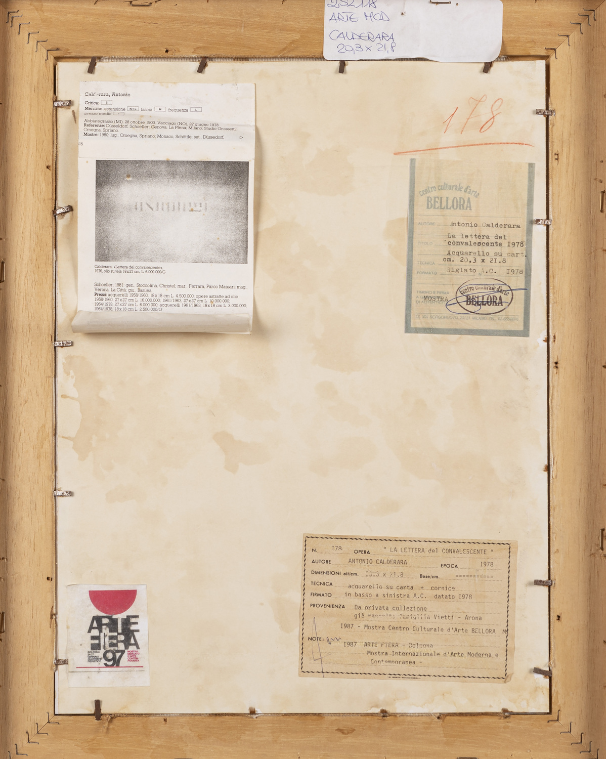 Exhibition: Milan, Centro Culturale d'Arte Bellora, 1987 (label on the back).