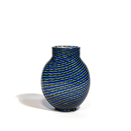 Un vaso 'Spira aurata' a canne colorate ritorte e foglia oro.