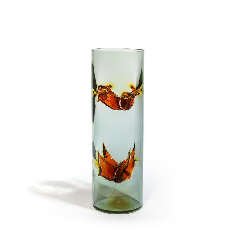 Un vaso in vetro verde con membrane 'autunno'.