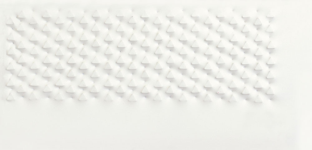 tela estroflessa bianca cm. 48x102, firma, titolo ed etichetta dell'Archivio Generale Giuseppe Amadio al retro, dichiarazione d'autenticità e Archivio Generale Giuseppe Amadio su foto, entro teca in plexiglass.