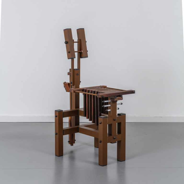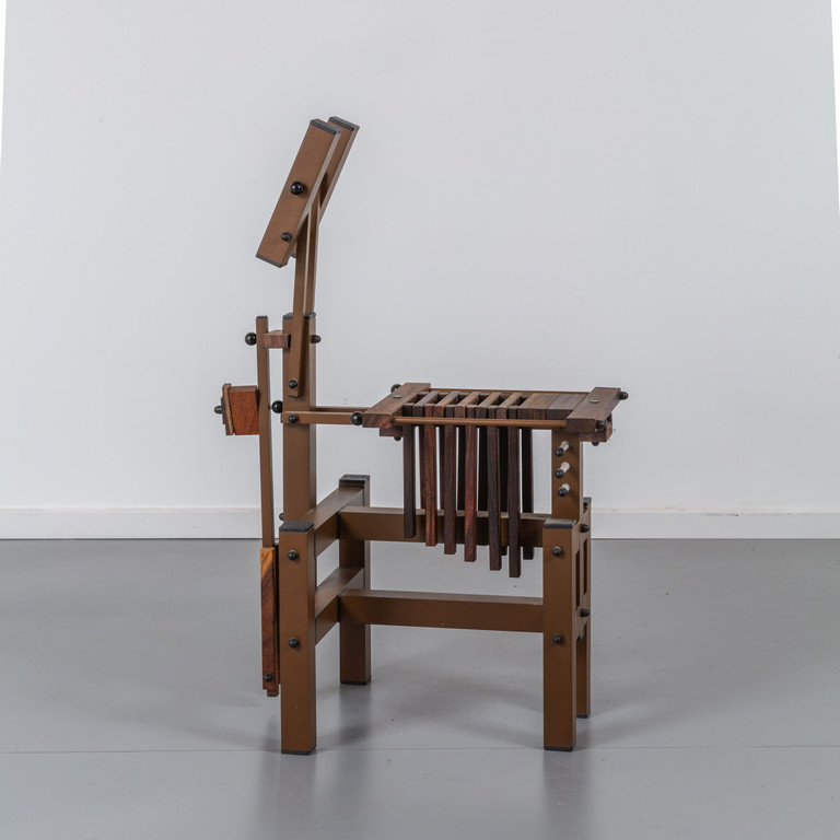 Alluminio verniciato, legno di palissandro, coprifori in plastica.