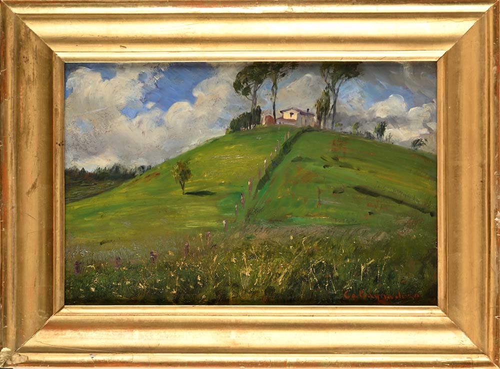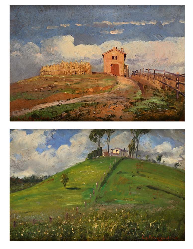 Antonino Calcagnadoro Rieti 1876 - Roma 1935 Due paesaggi di campagna A) La casa sulla collina