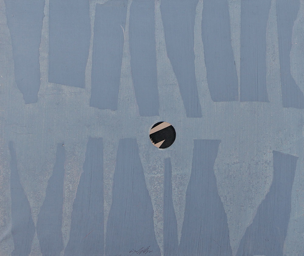 DANGELO SERGIO Milano 1932Luna prigioniera, 1969tempera e collage su tela cm....