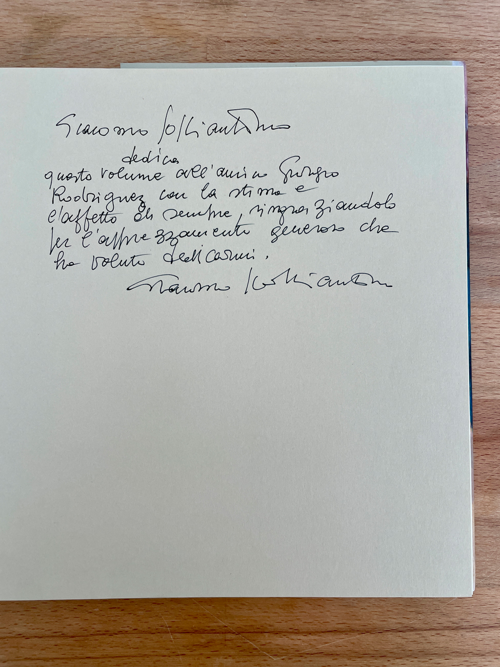 Reca dedica e firma dell'Artista Giacomo Soffiantino all'Interno