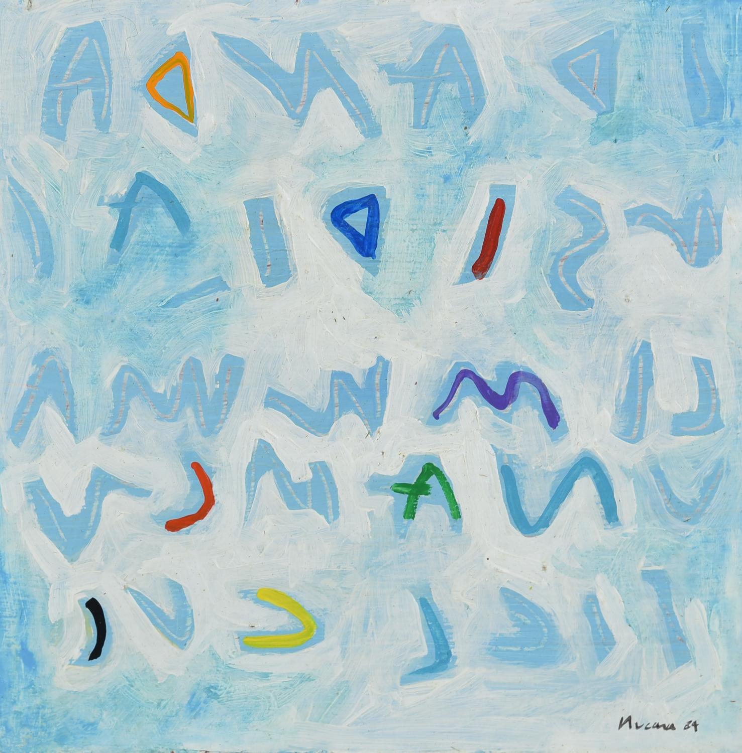 Renzo Nucara (1955) SCRITTURA, 1984 acrilico su masonite, cm 20x20 firma sul...