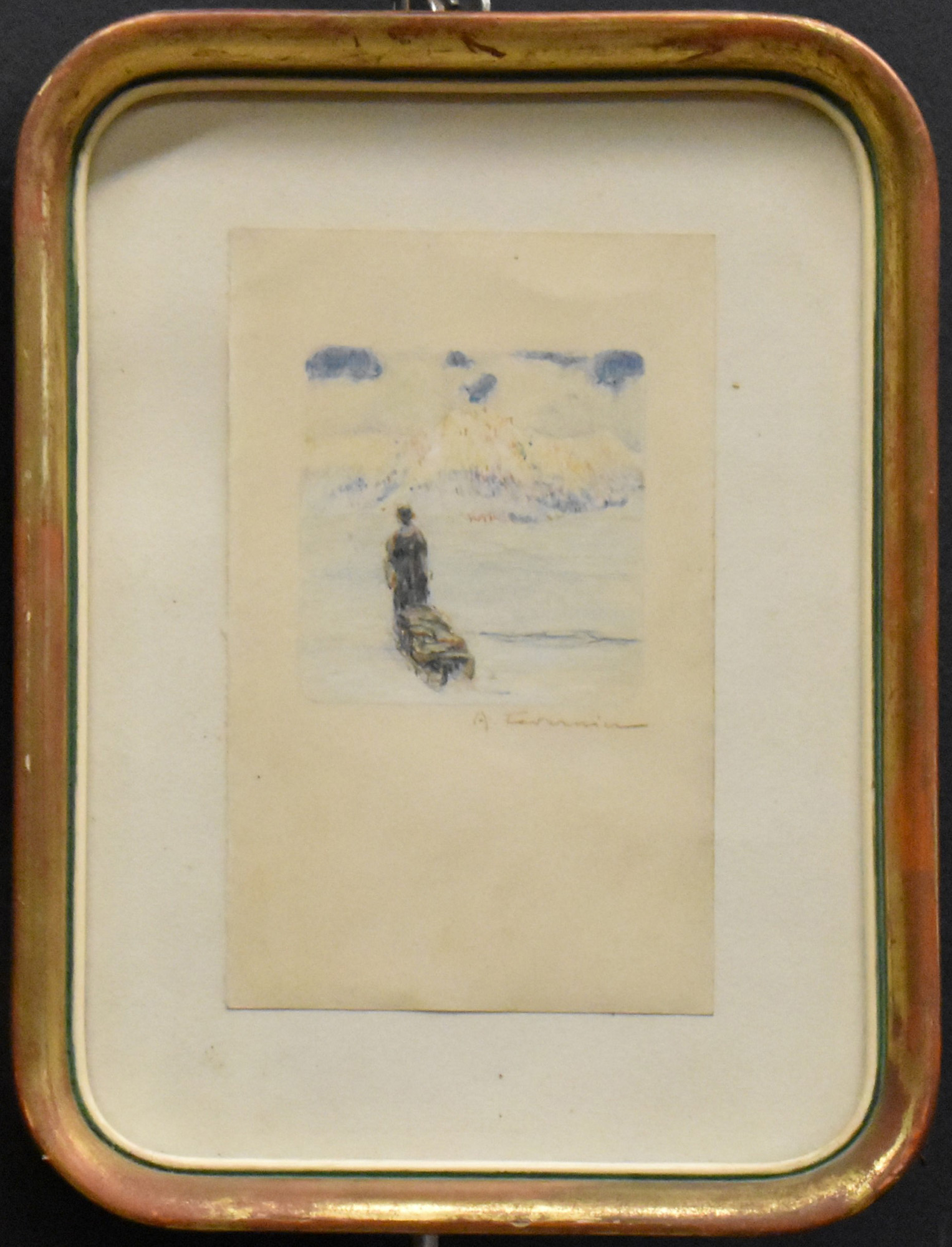 Andrea Tavernier (1858-1932) 'Donna con slitta' pastello firmato in basso a destra