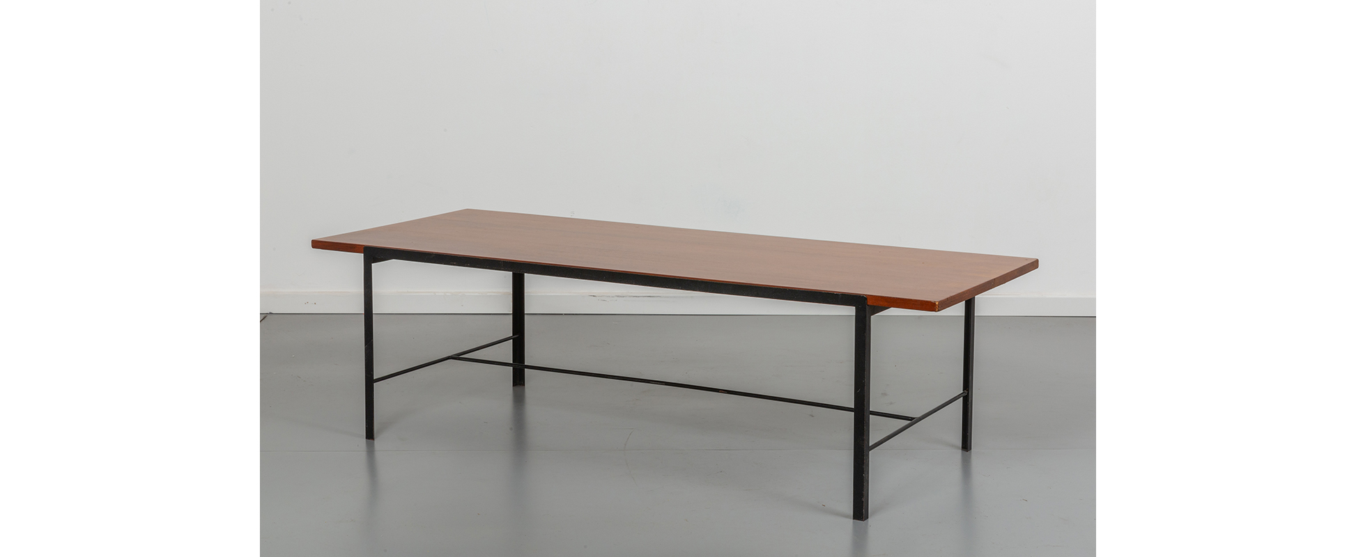 Struttura in acciaio verniciato legno impiallacciato in teak.