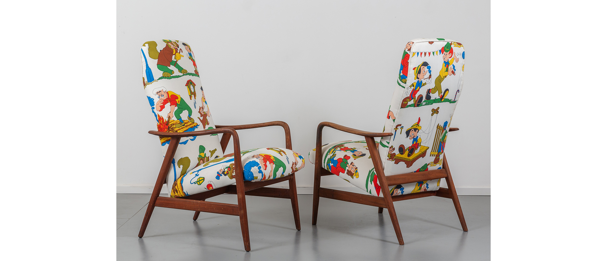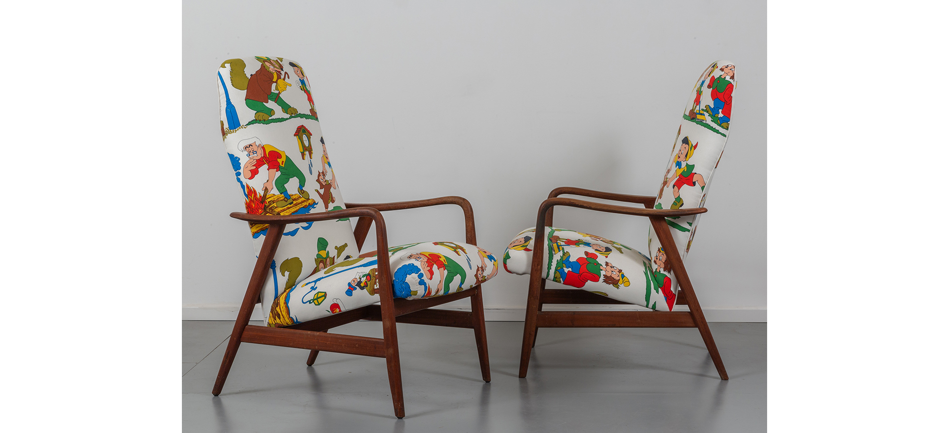 Legno di teak imbottiture rivestite in tessuto stampato.