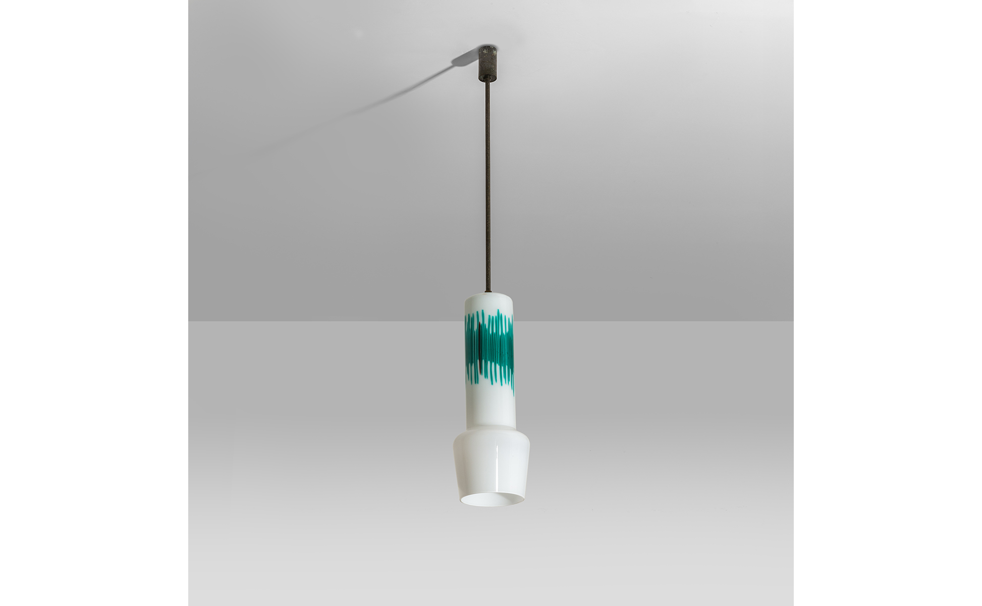 Vetro lattimo con applicazione di canne verticali ottone.