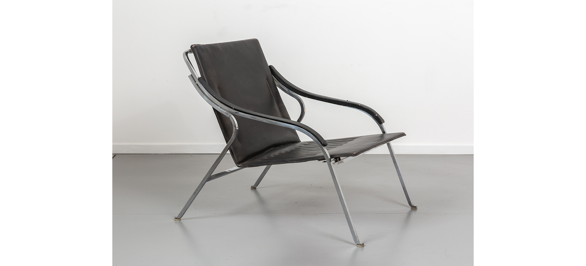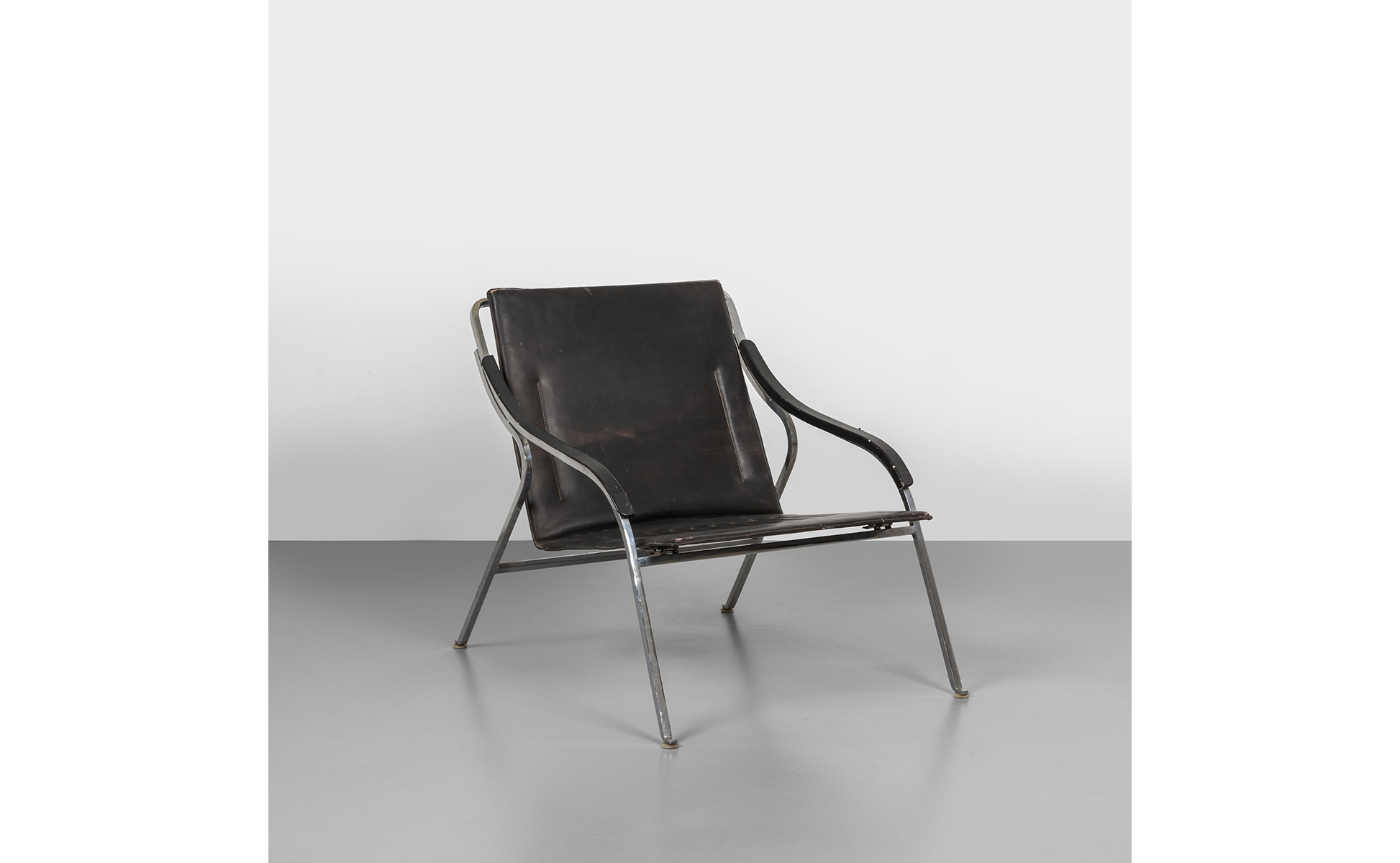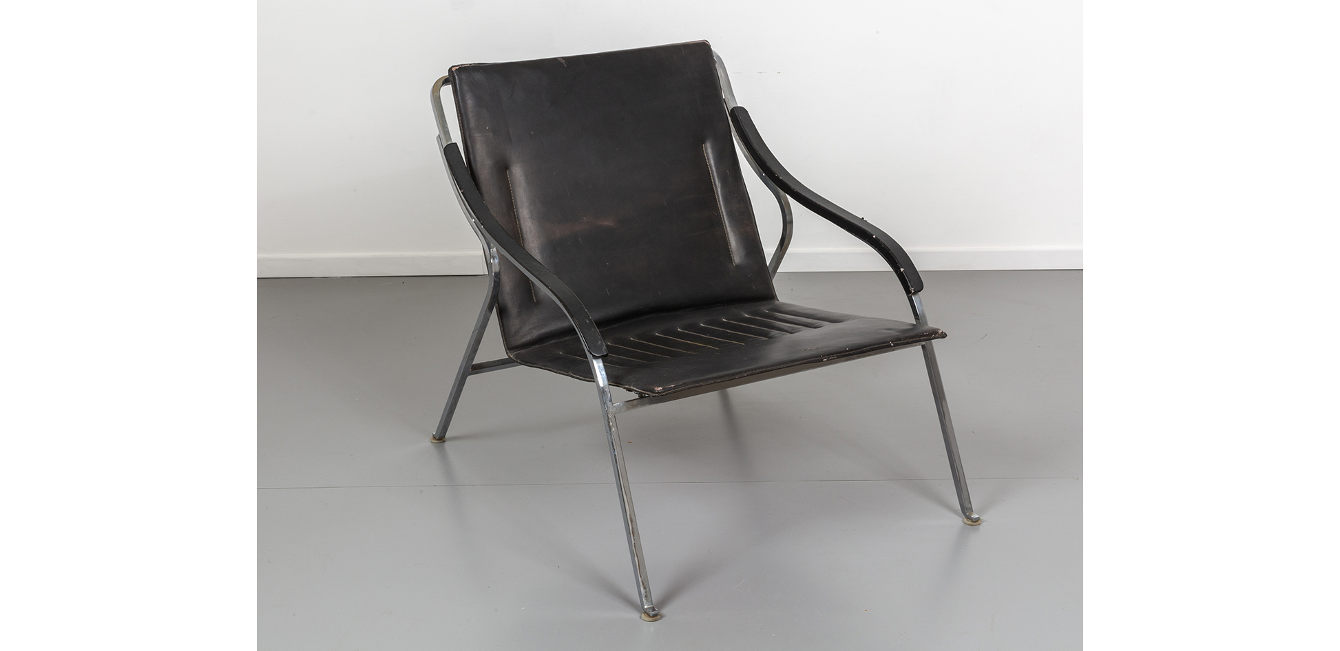 Acciaio cromato sedile-schienale leggermente imbottito rivestito in pelle.