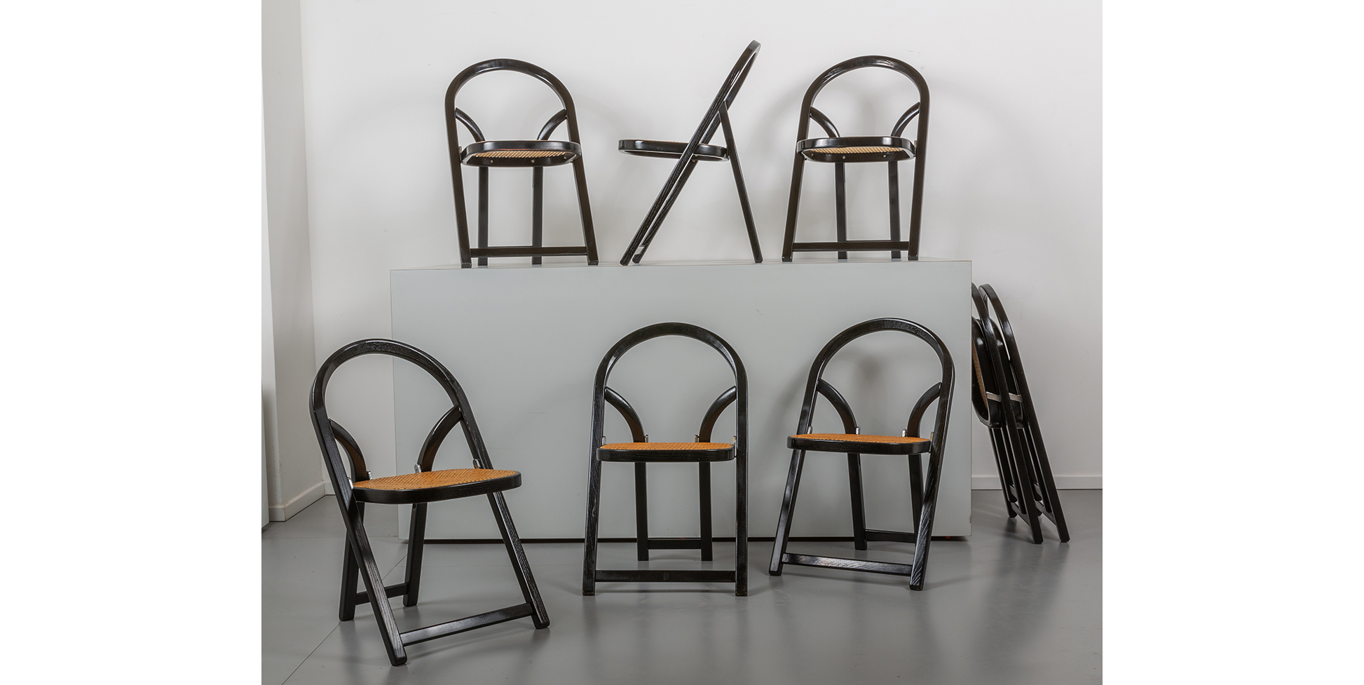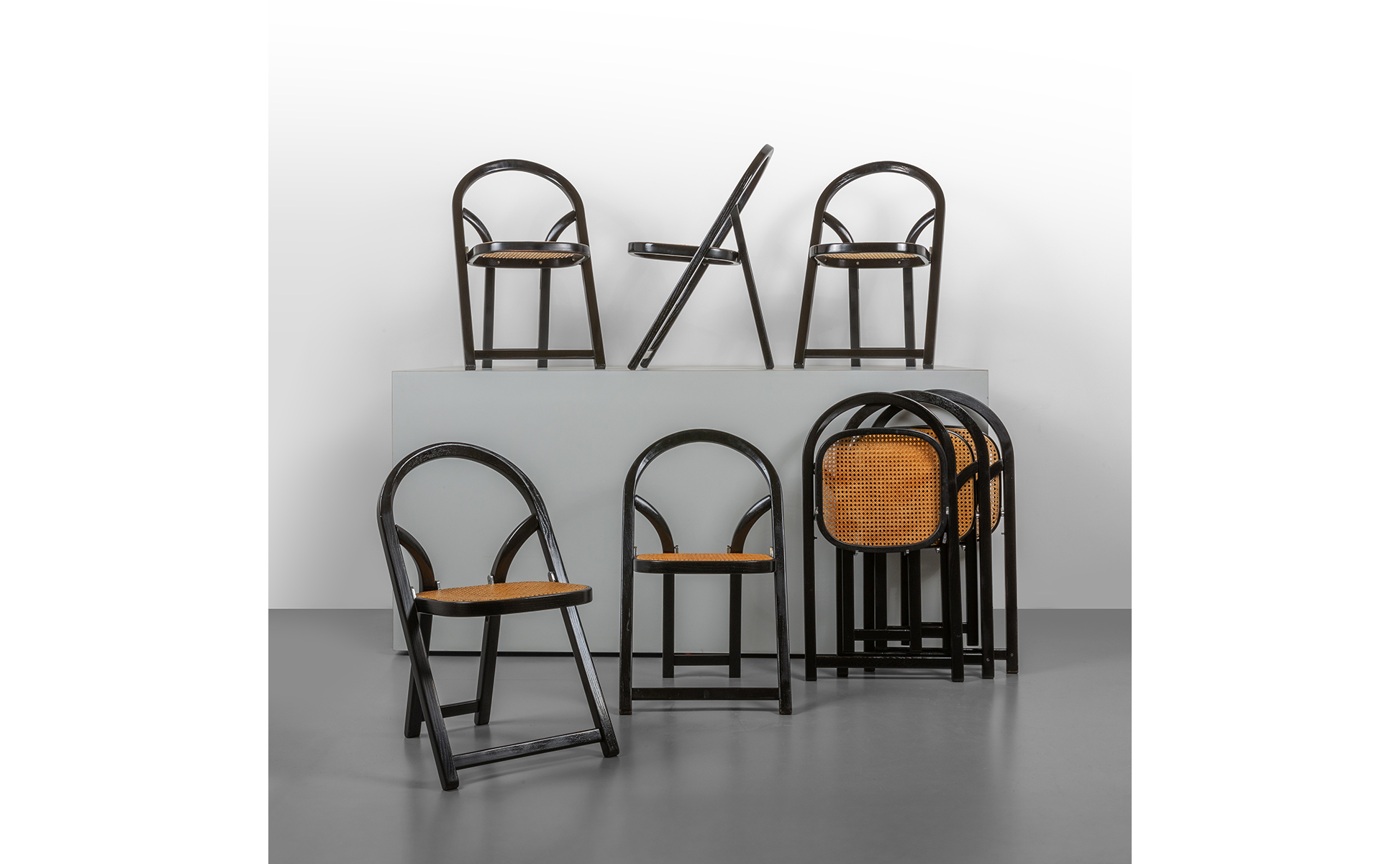 Otto sedie pieghevoli 'Arca'.