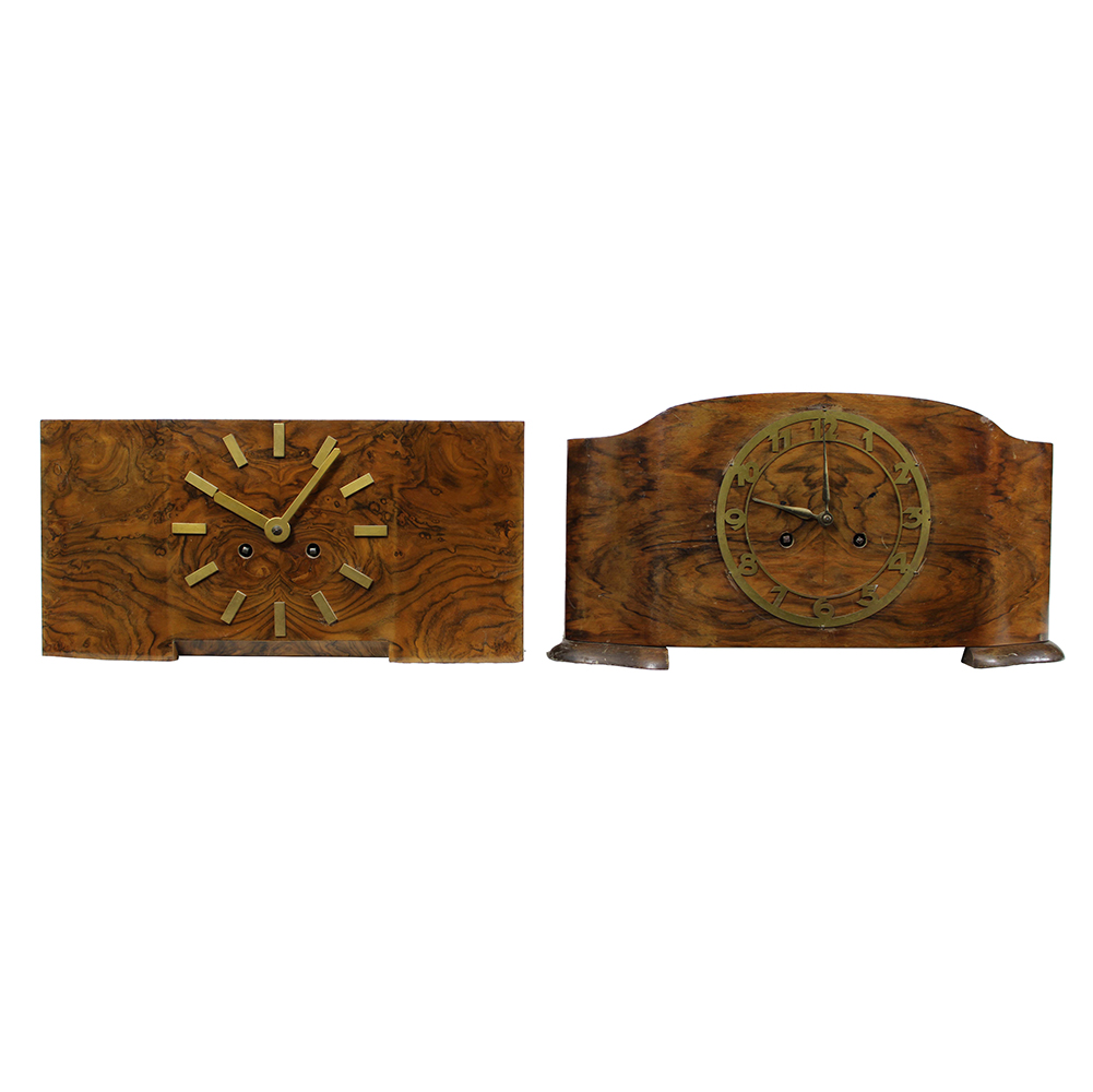 LOTTO COMPOSTO DA 2 orologi da tavola con cassa in radica di noce , da revisionare Europa del Nord XX secolo h cm 19 x 38 x 12 / h cm 21 x 42 x 15