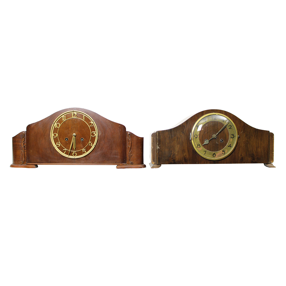 LOTTO COMPOSTO DA 2 orologi da tavolo con cassa in noce , da revisionare Europa del Nord XX secolo h cm 22 x 48 x 17 / h cm 22 x 51 x 15