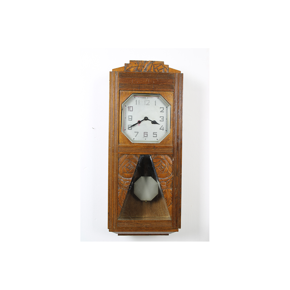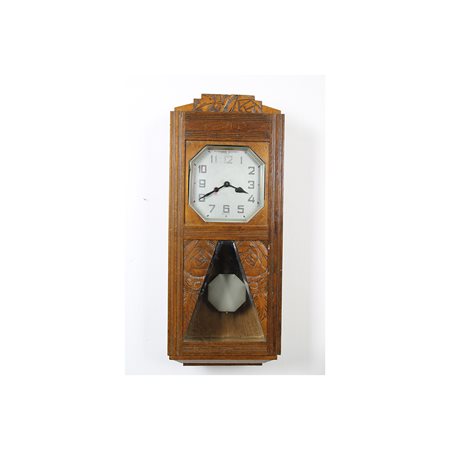 OROLOGIO LIBERTY A PENDOLO DA MURO con cassa in legno di rovere scolpita a motivi floreali , da revisionare Germania primi 900 h cm 74 x 30 x 15