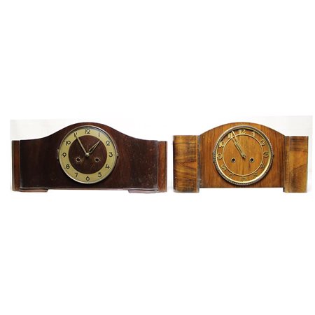 DUE OROLOGI D'APPOGGIO di cui uno con cassa in legno di noce e uno in legno di rovere , da revisionare Europa del Nord XX secolo h cm 21,5 x 43,5 x 14,5 / h cm 21 x 49 x 15