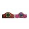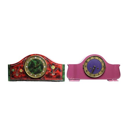 DUE OROLOGI DA TAVOLO dipinti in vari colori , da revisionare, un pendolo mancante. XX secolo h cm 22 x 42 x 14 / h cm 23 x 48 x 15