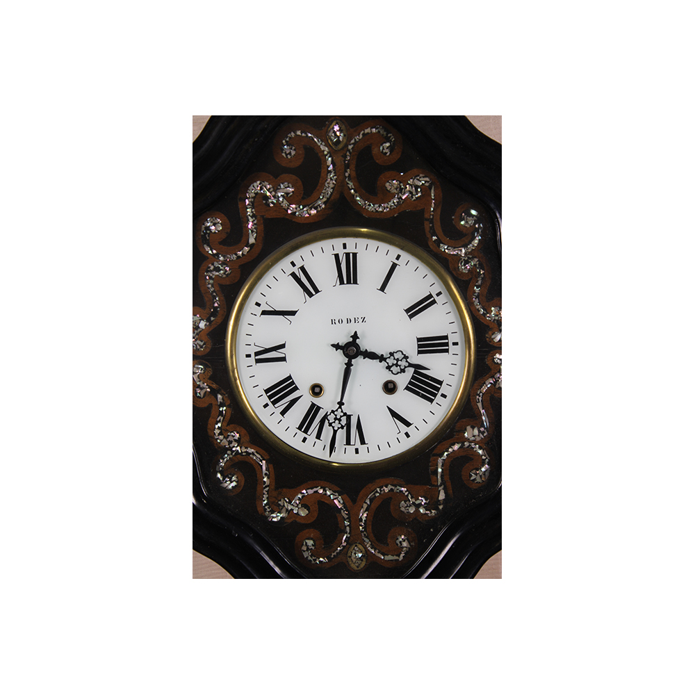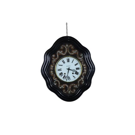 OROLOGIO DA MURO in legno ebanizzato e applicazioni in madreperla , da revisionare Francia fine 800 primi 900 h cm 61 x 48