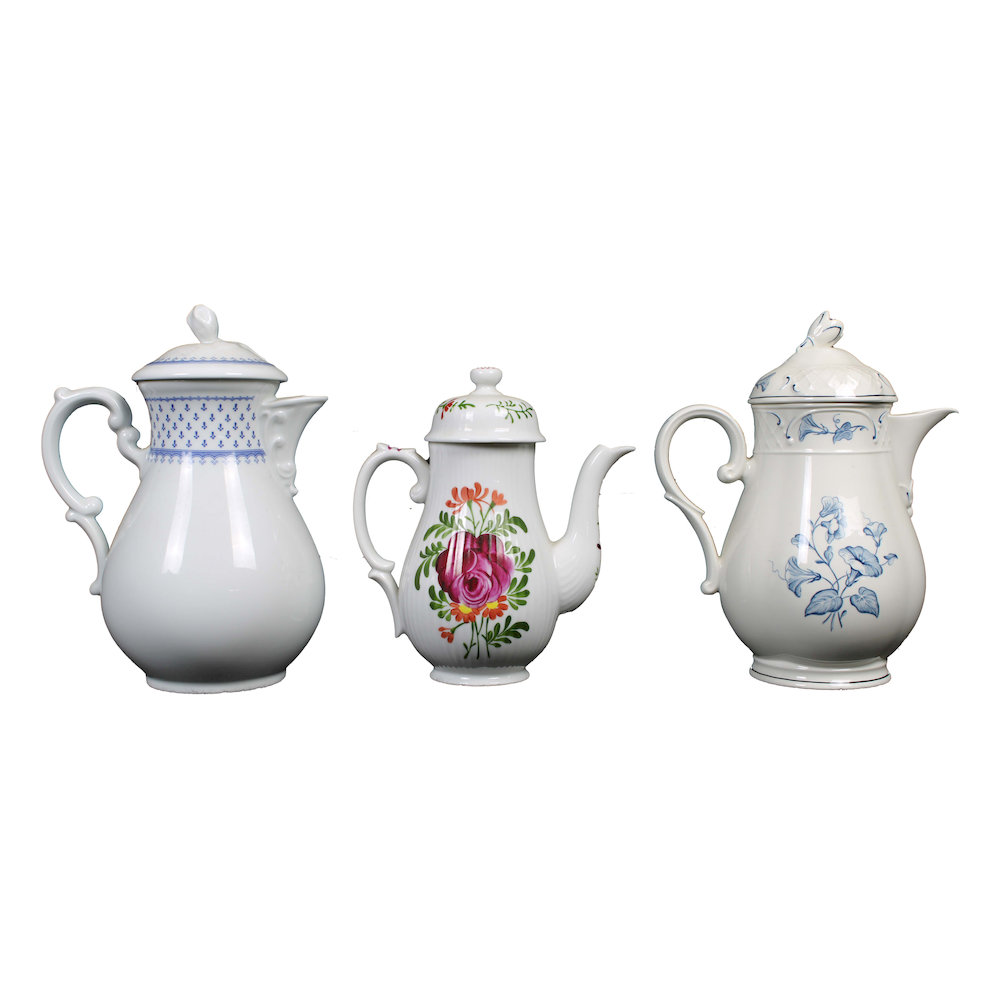 LOTTO COMPOSTO DA 3 caffettiere in porcellana dipinta diversa manifattura primi 900 misure varie