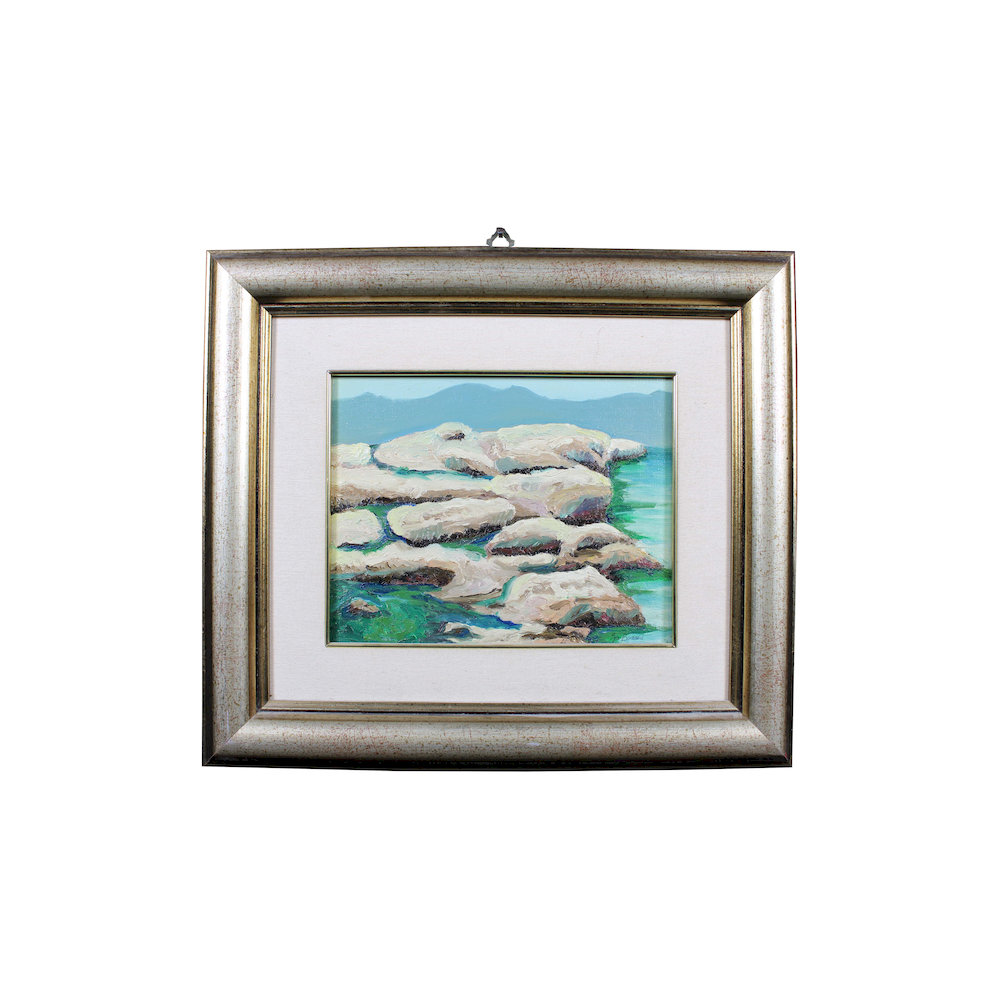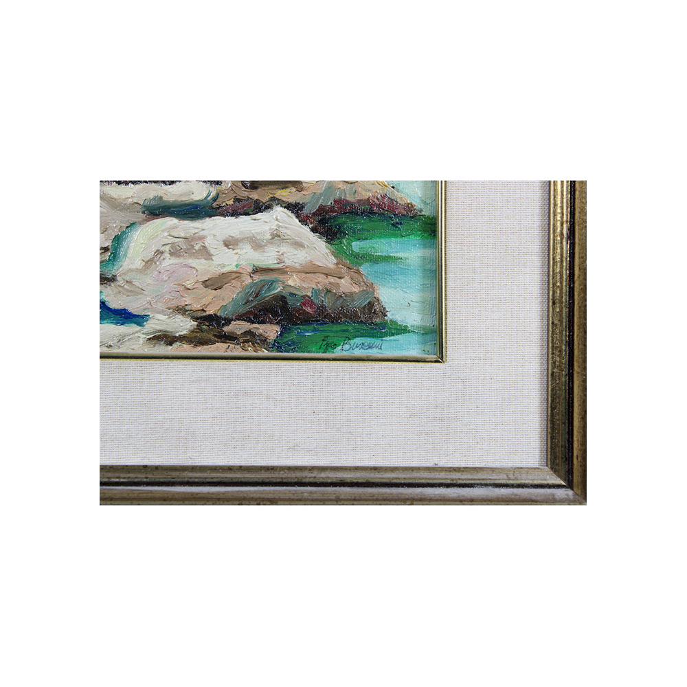 DIPINTO OLIO SU TELA raffigurante scogliera firmato Pippo Buscemi h cm 20 x 30 / cornice h cm 96 x 51