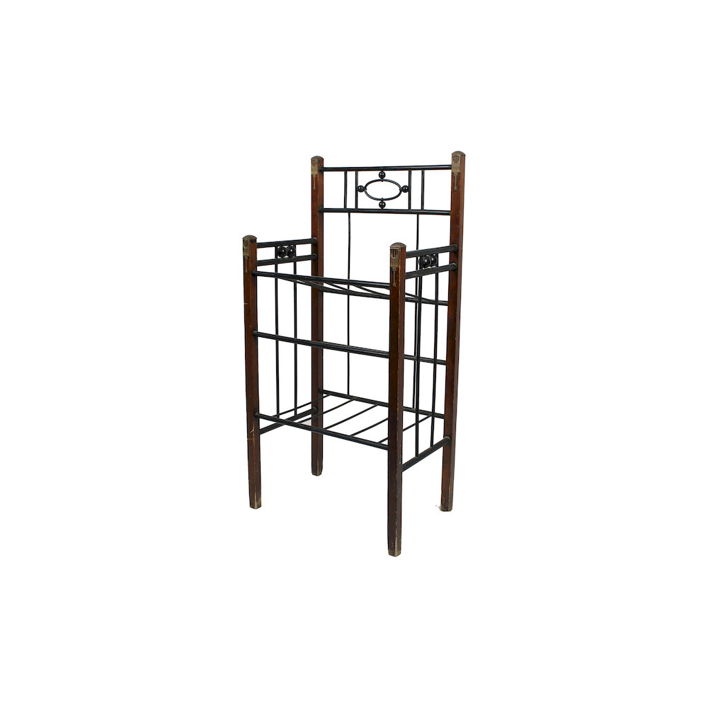 ETAGERE PORTA RIVISTE in legno di noce e legno ebanizzato con applicazioni in bronzo periodo Art nouveau primi 900 h cm 91 x 45 x 29,3