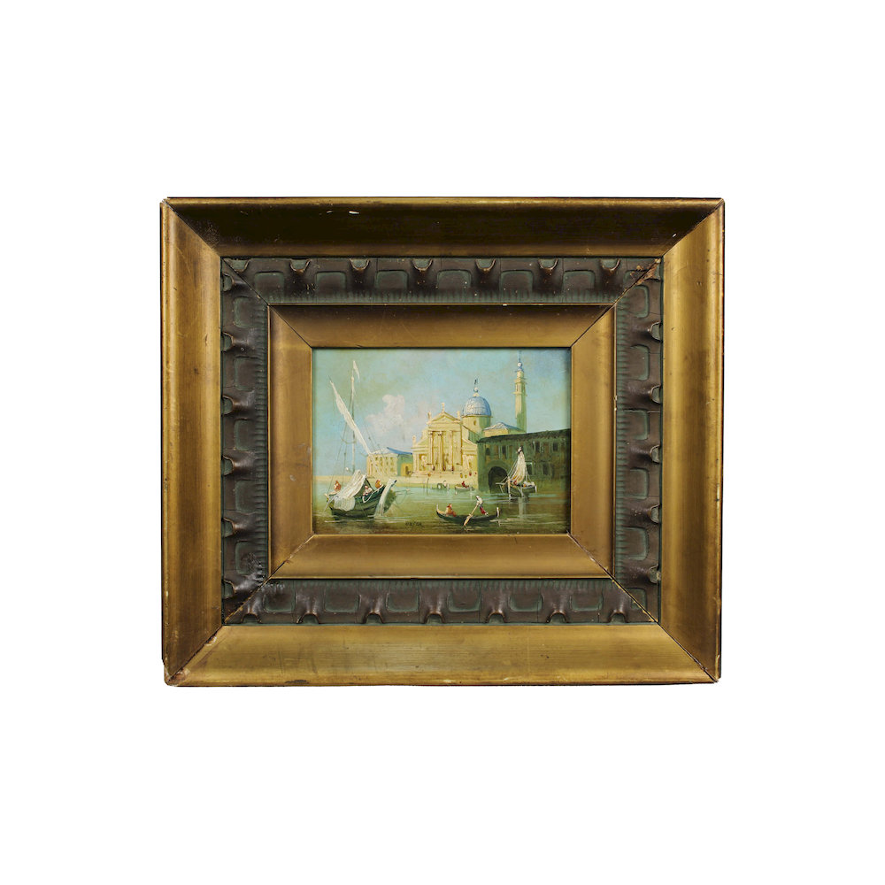 DIPINTO piccolo olio su lastra di metallo raffigurante Venezia h cm 9 x 12 / cornice h cm 21 x 25