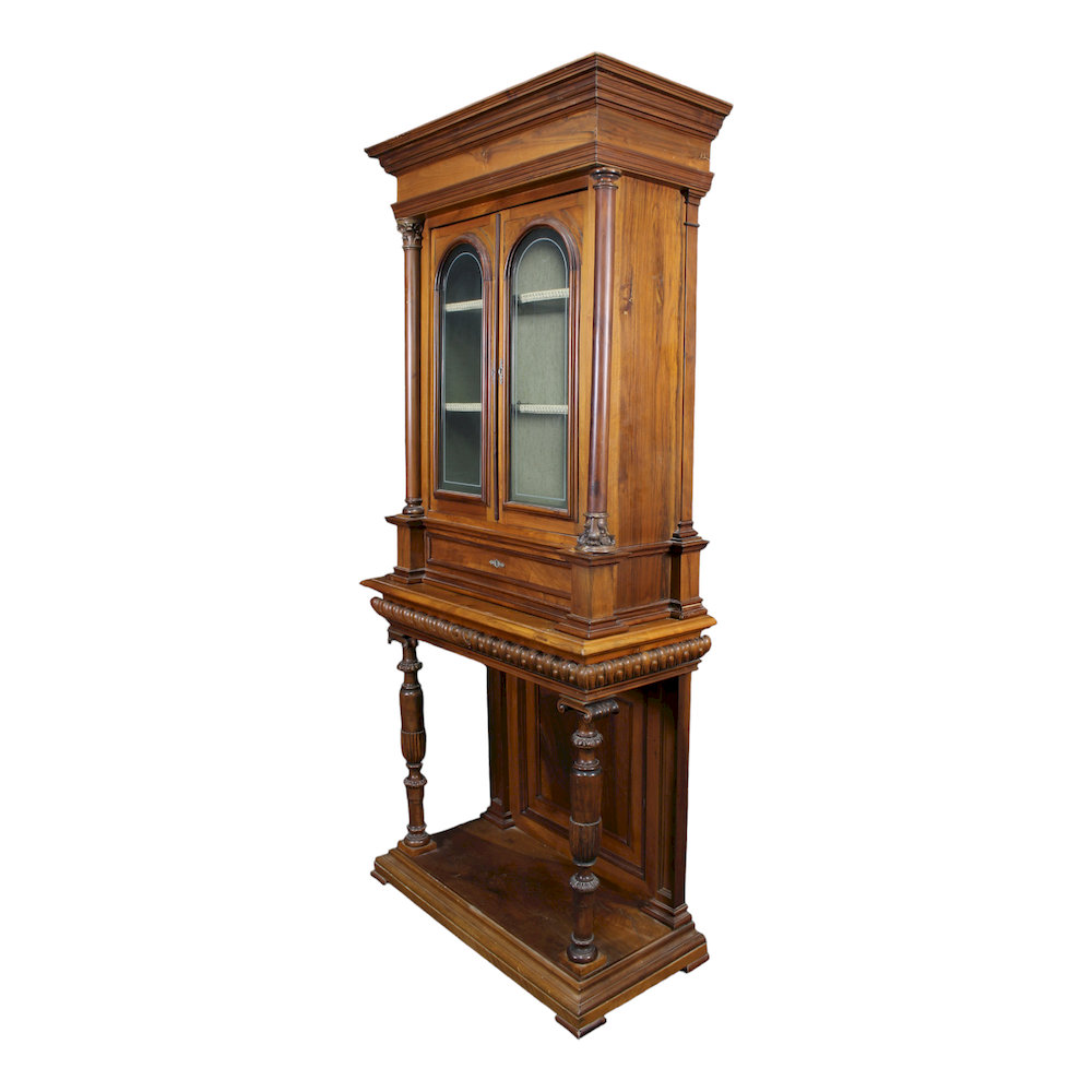 VETRINA A DUE ANTE in noce sorretta da consolle sostenuta da gambe a colonna con capitelli Sicilia XIX secolo h cm 229 x 103 x 46