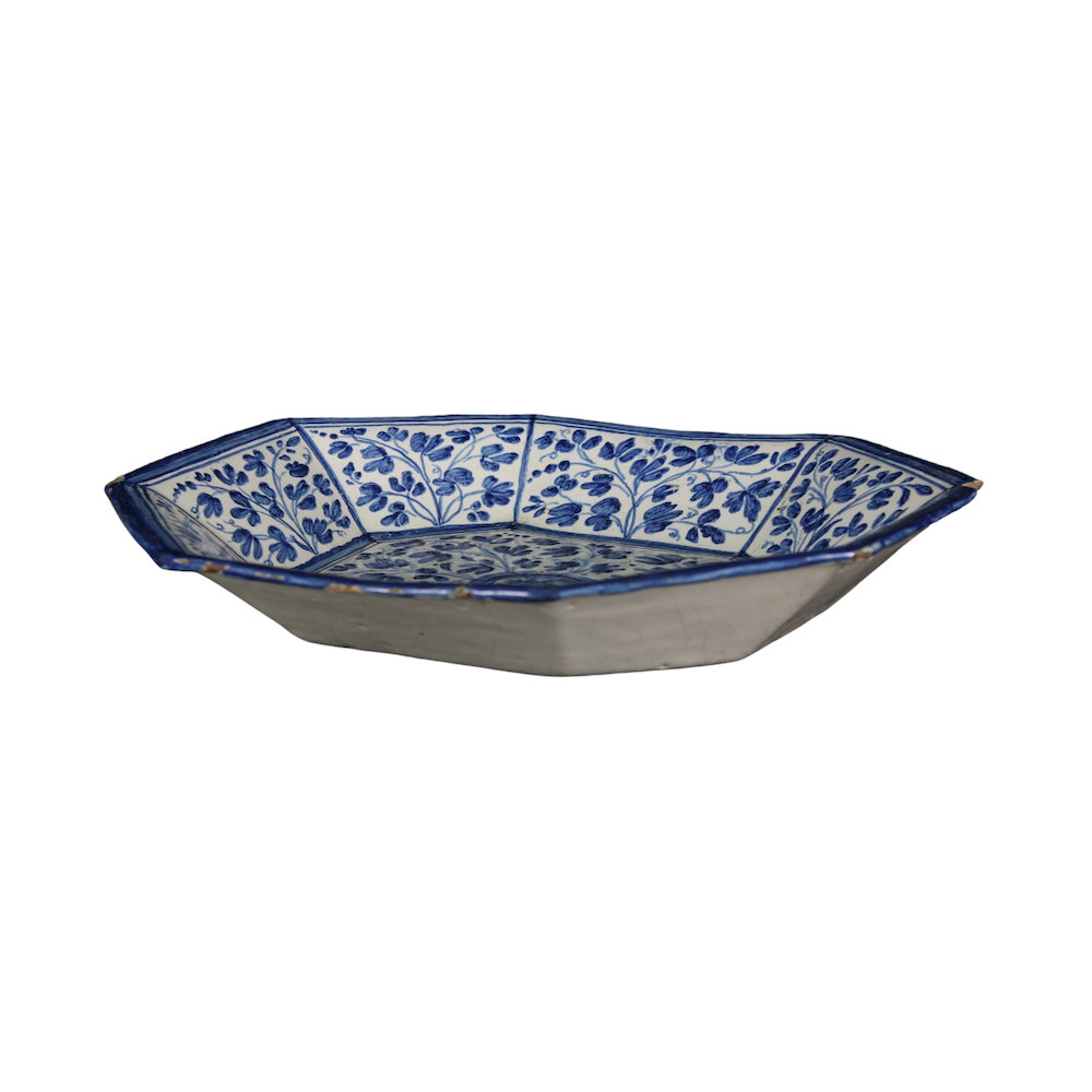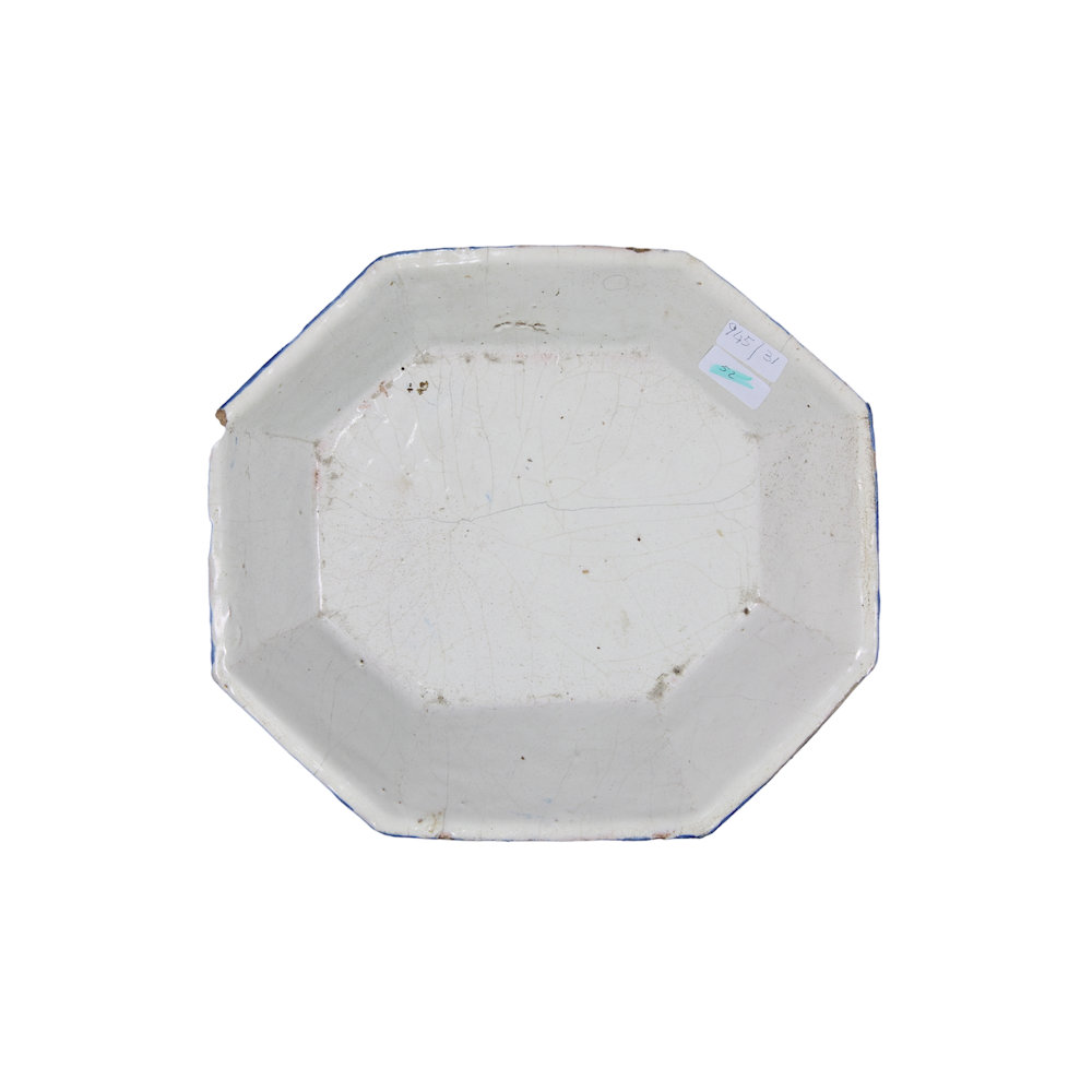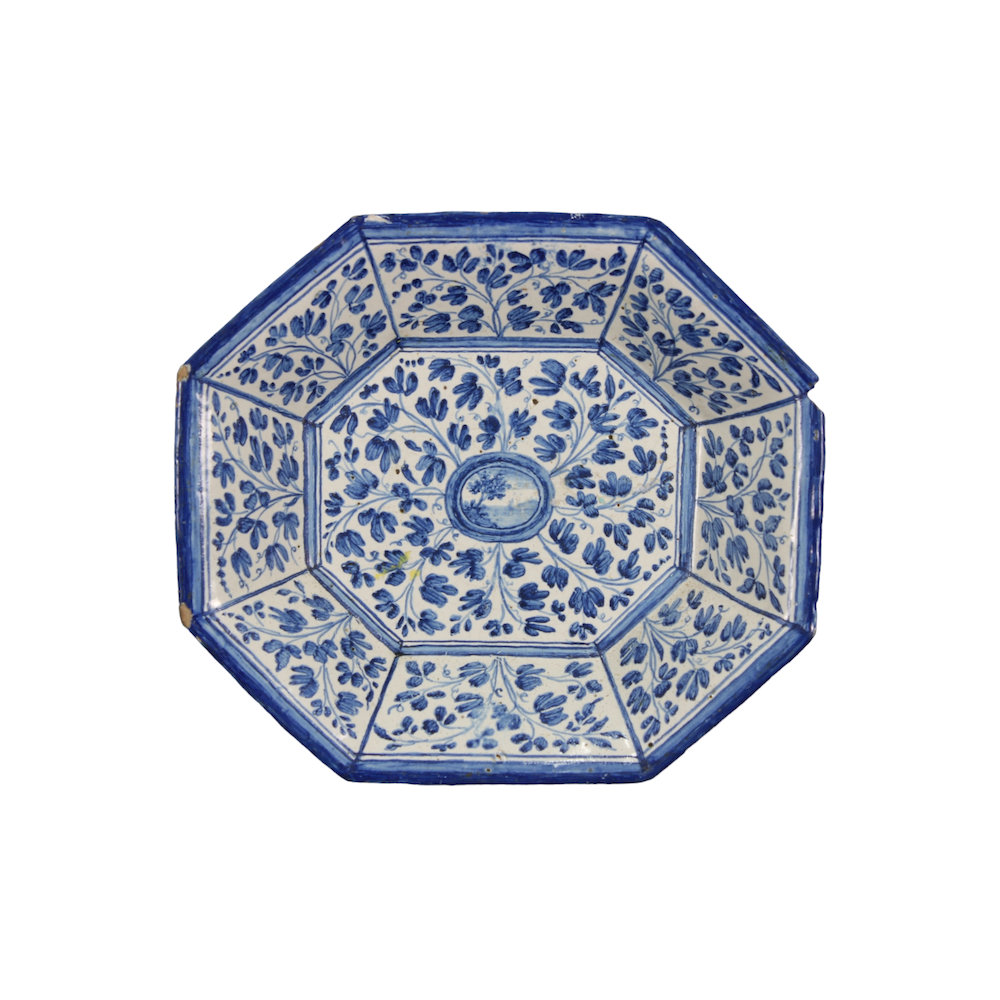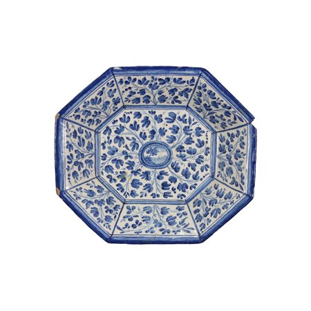 CIOTOLA DI FORMA OTTAGONALE in maiolica dipinta probabilmente manifattura La Terza XVIII secolo h cm 4 x 22,5 x 25,5
