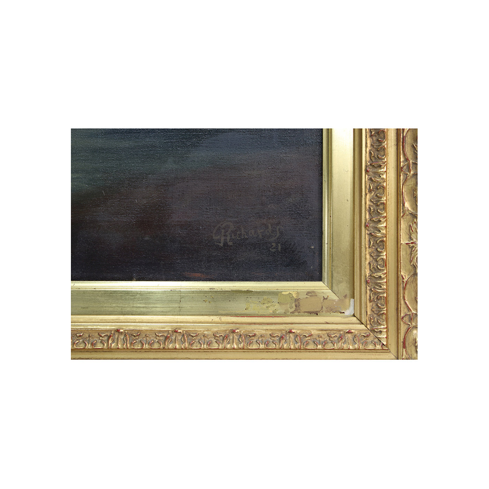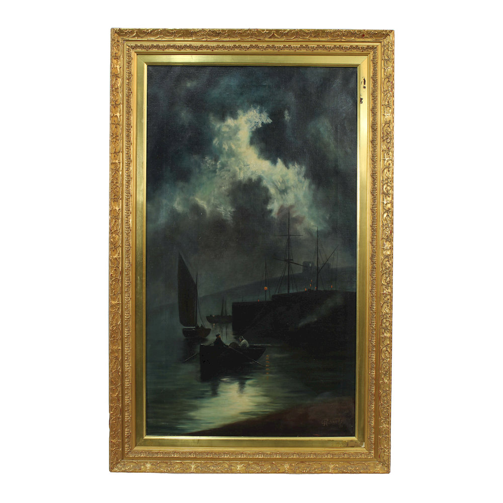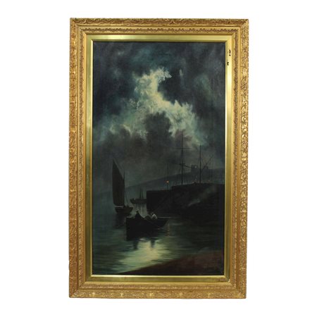 OLIO SU TELA raffigurante marina in notturna firmato Richards 1921 h cm 107 x 61 / cornice h cm 128 x 81